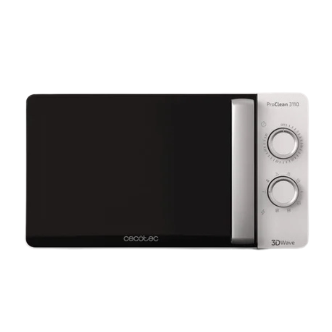 Cecotec Microondas con Grill ProClean 3110. 700 W, Grill 800 W, 20 L de capacidad, Tecnología 3DWave, Modo Descongelación, 6 Niveles de Potencia, Temporizador 30 min, Blanco